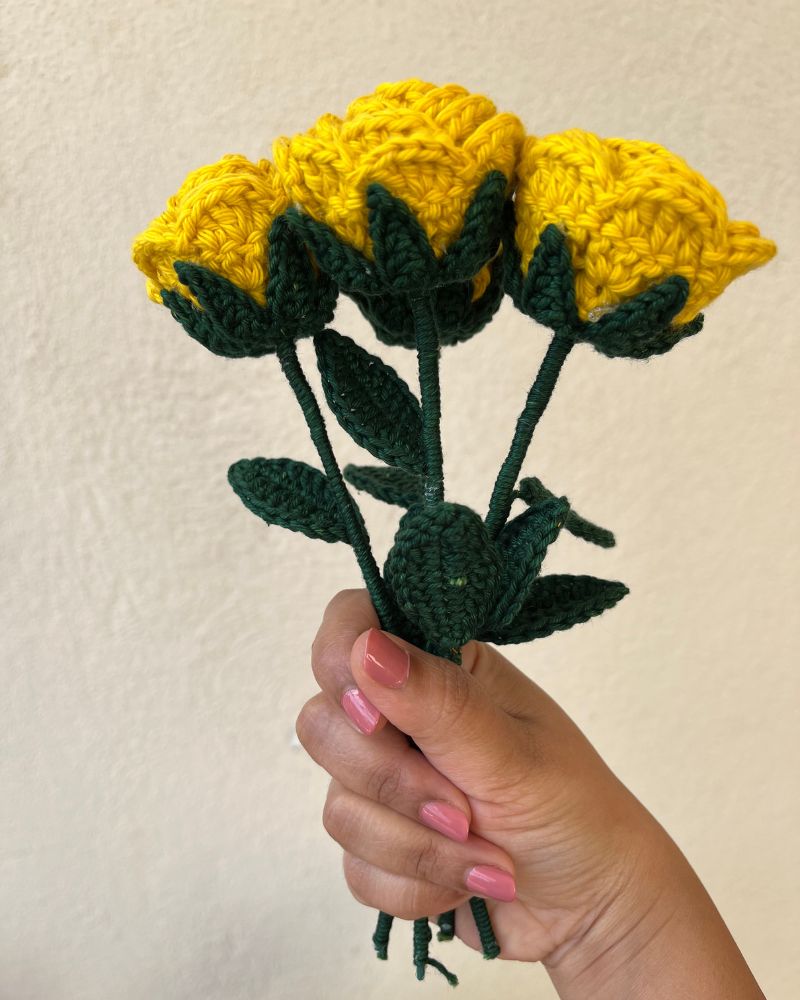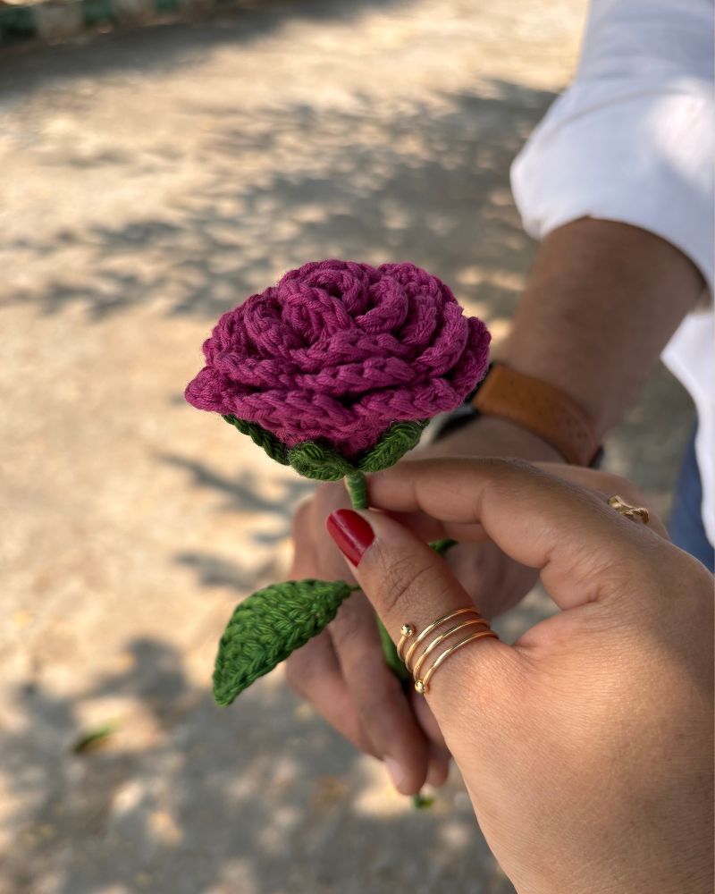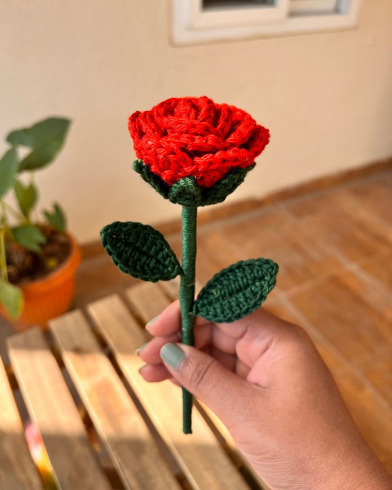 Whether you’re gifting a loved one, decorating your home, or assembling a crochet rose bouquet, this flower adds a lasting touch of love. Choose from a single rose stick for ₹270, or mix and match in custom bunches for a fuller arrangement.