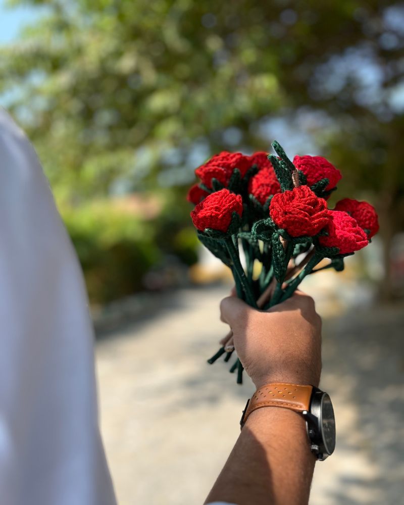 Let your space bloom with warmth, love, and creativity through our beautifully handcrafted Crochet Rose Garden – Pack of 7 mixed colours — a timeless bouquet made for hearts that cherish beauty and sustainability.