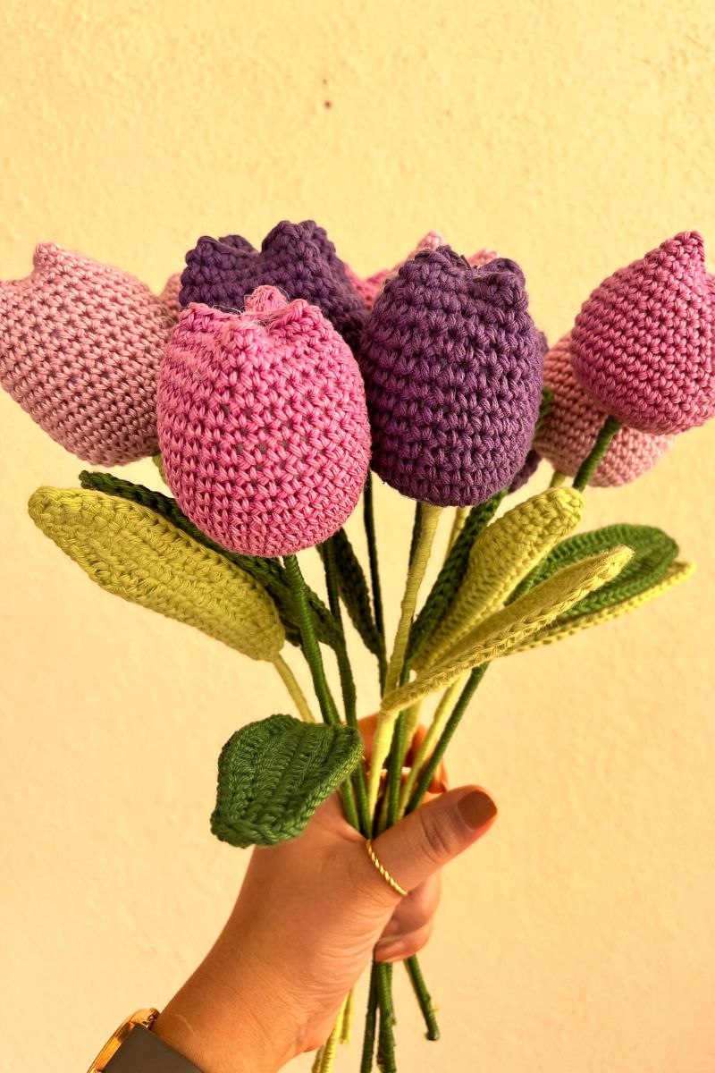 We’ve priced each crochet tulip stick close flower at ₹220 per stick to reflect the quality, time, and care that goes into every handmade piece — while still keeping them accessible for gifting or collecting.
