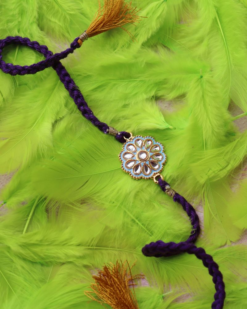 Every element of this crochet kundan rakhi is meticulously crafted:
