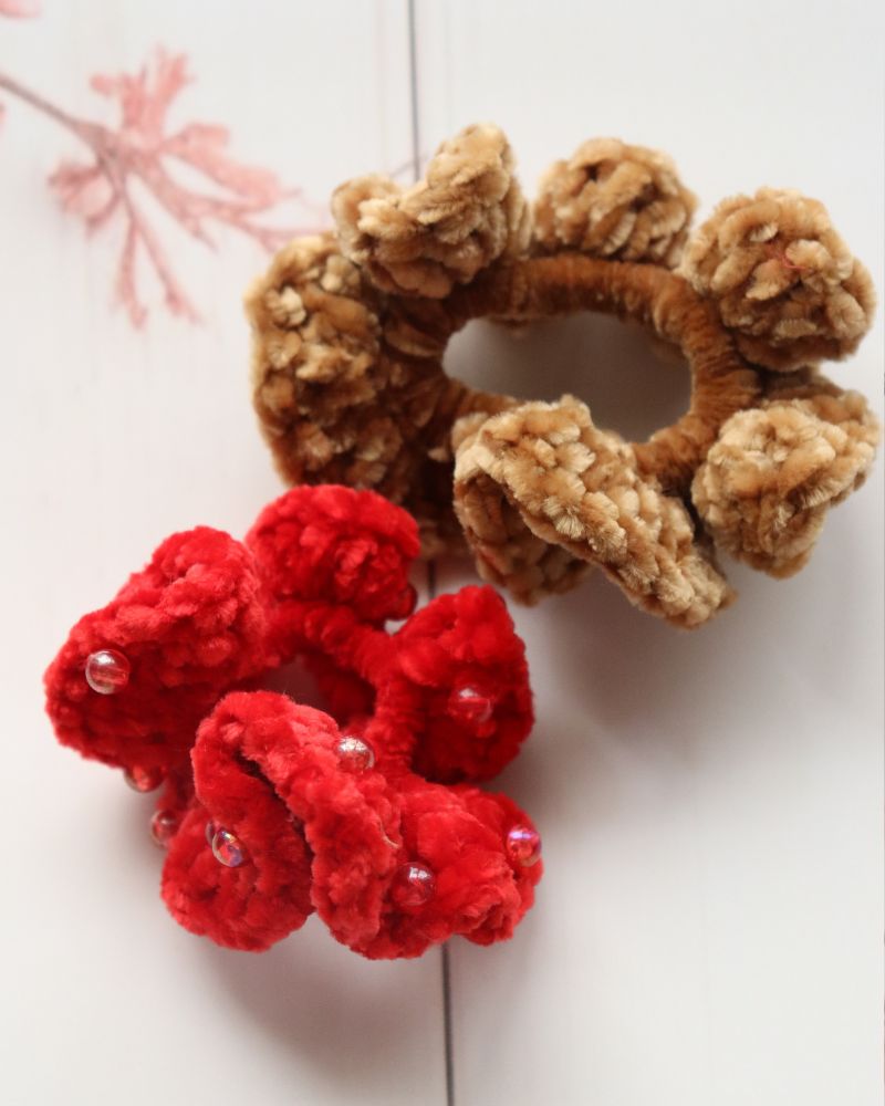 Whether you’re dressing up for a festive evening or keeping it casual on a coffee date, this duo of red and brown velvet scrunchies completes every outfit beautifully. Handcrafted scrunchie adorned with pearls — where timeless elegance meets modern comfort. Designed for those who love a little sparkle in simplicity, this scrunchie transforms even the most casual hairstyle into something graceful and refined.